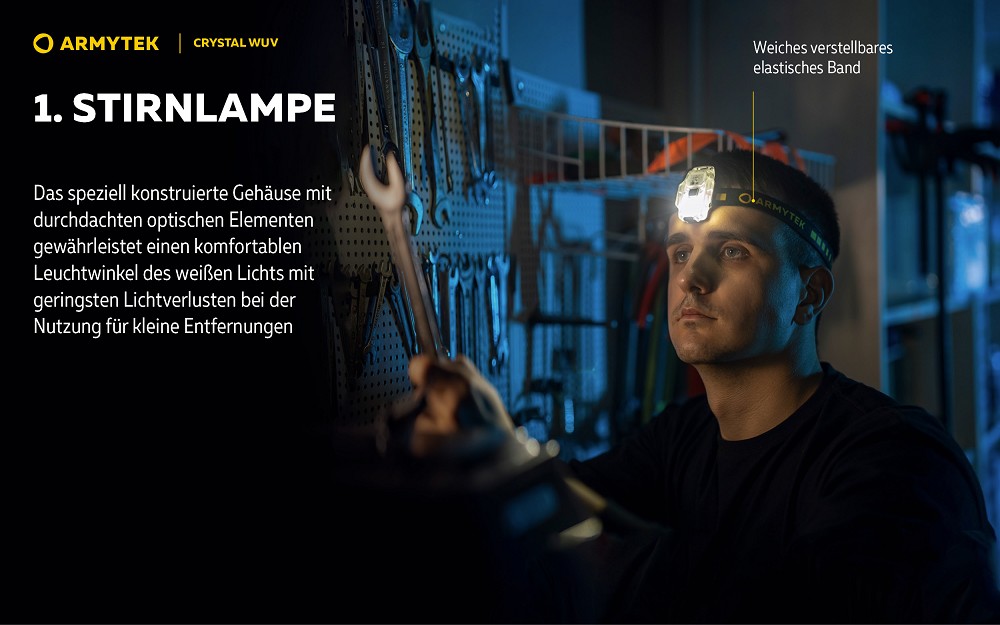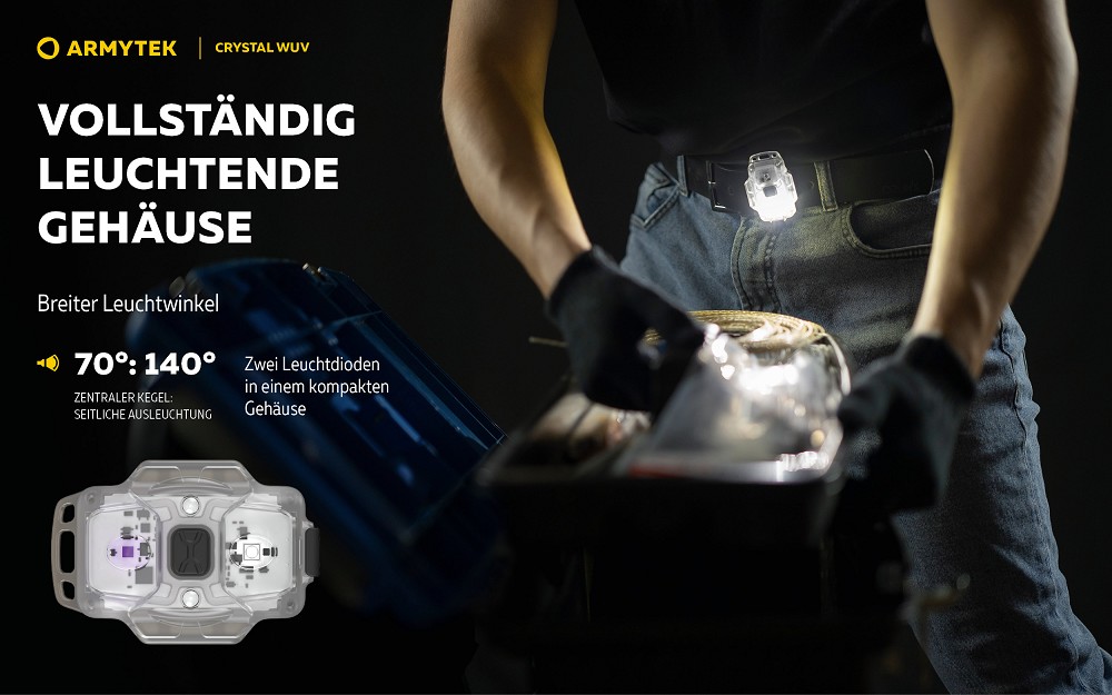 Ein besonderes Highlight ist das integrierte UV-Licht mit 365 nm Wellenlänge. Damit lassen sich unsichtbare Markierungen sichtbar machen, technische Leckagen erkennen oder Flecken im Haushalt aufspüren. Die vielseitigen Einsatzmöglichkeiten machen die Crystal WUV zu einem praktischen Werkzeug für Alltag, Hobby und spezielle Anwendungen.