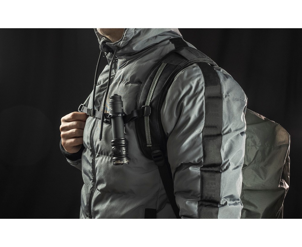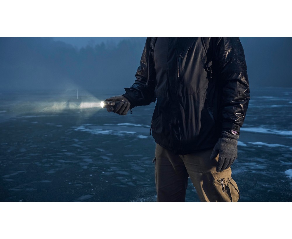 Die Lampe ist sowohl für taktische Einsätze als auch für den Alltagsgebrauch optimiert. Zwei Bedientasten ermöglichen schnelles Umschalten zwischen den Modi: ein taktischer Knopf für Ein-/Ausschalten und Stroboskop, ein seitlicher Knopf für das Einstellen der Leuchtstufe. Der lautlose elektronische Knopf sorgt für unauffälliges Arbeiten, während verbesserte Federn den Akku und die Elektronik auch bei Rückstoß schützen.