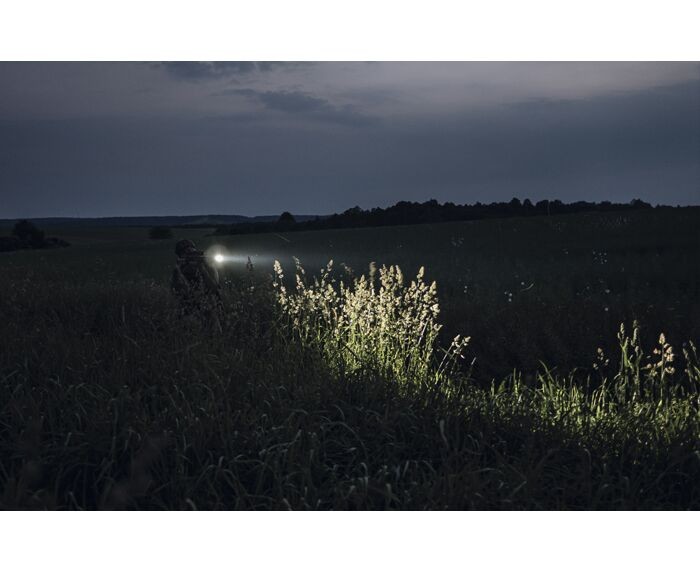 Die Predator Pro ist ein Modell mit enger, gerichteter Lichtführung für zielgenaues Anleuchten von Objekten auf 100–300 Metern. Der zentrale Lichtkegel ist klar definiert, die seitliche Streuung minimal – maximale Leuchtweite: 501 Meter.