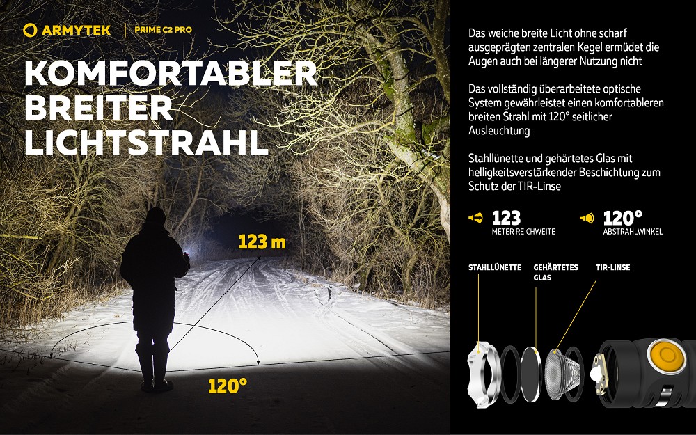 - Neues optisches System mit TIR-Linse für helleres, breiteres Licht