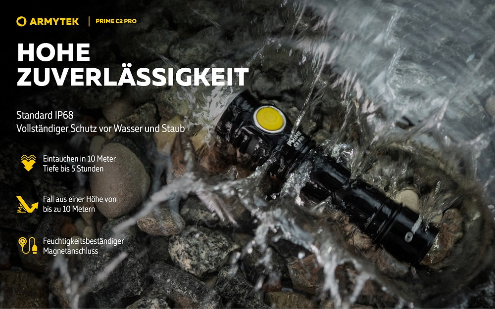 - Schutzklasse: IP68 (wasser- und staubdicht), tauchbar bis 10 m, sturzsicher bis 10 m