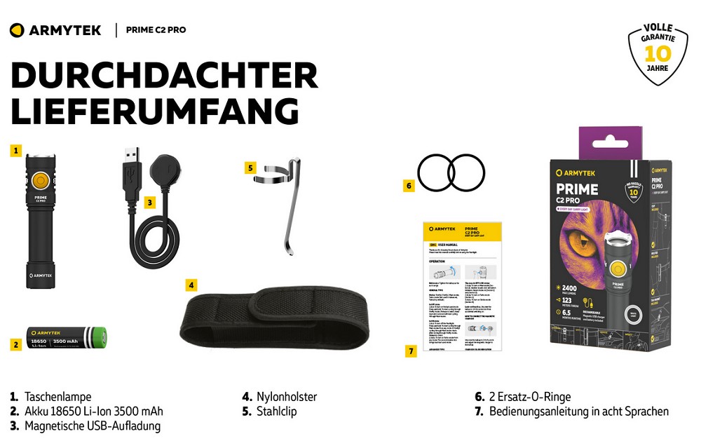 Der Prime C2 Pro ist eine vielseitige Taschenlampe für den täglichen und professionellen Einsatz. Sie überzeugt mit einer maximalen Helligkeit von 2400 Lumen, einem breiten Lichtwinkel von 120° und einem robusten, kompakten Gehäuse. Ideal für Wandern, Radfahren, Sicherheitsaufgaben und Servicearbeiten.