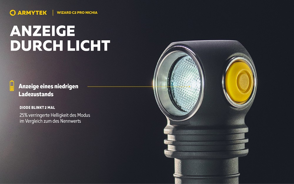 - Konstant helles Licht auch bei niedrigen Temperaturen und teilweise geladenem Akku
