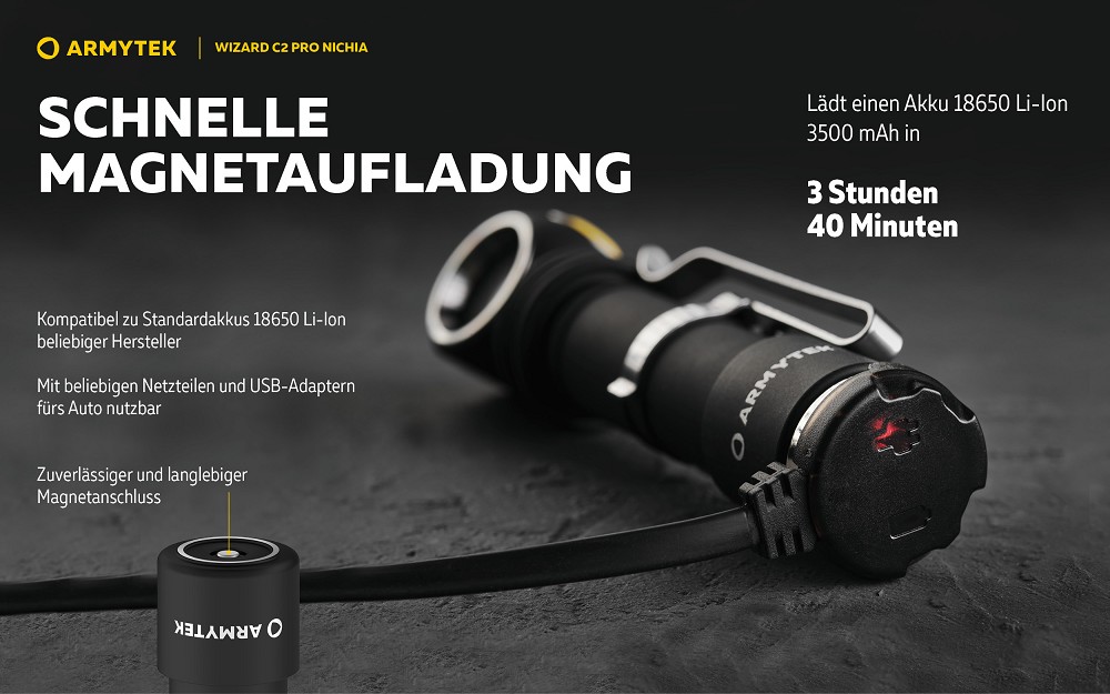 - Schnelle magnetische Aufladung: 18650 Li-Ion 3500 mAh Akku in 3 h 40 min