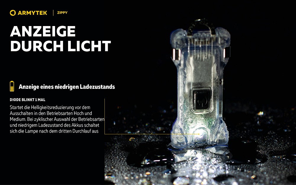 Die Armytek Zippy ist damit eine kompakte, flexible und robuste Lichtlösung für unterwegs, Arbeit oder Outdoor-Aktivitäten.