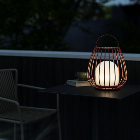 Die Leuchte Jim wurde vom dänischen Designerduo Says Who entworfen. Die Serie hat eine abgerundete, luftige Silhouette und einen praktischen Griff, mit dem die Leuchte einfach an einer beliebigen Stelle platziert werden kann. Die tragbare Lampe ist batteriebetrieben und mit der Moodmaker™-Funktion ausgestattet, die drei verschiedene Beleuchtungsmodi bietet – perfekt, um auf der Terrasse, dem Balkon oder im Garten das jeweils passende Ambiente zu schaffen.