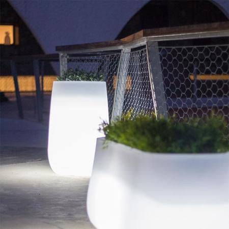 Einzigartig ist dieser beleuchtete weiße Pflanzkübel für den Außenbereich namens Camelia Large. Charakteristisch ist für dieses leuchtende Pflanzgefäß seine weichen und abgerundeten Formen (98 x 40 x 39,5 cm). Lassen Sie Ihre Pflanzen, egal ob bunte Sommerblumen oder Pflanzen mit attraktivem Blattwerk, in diesem Gefäß bei Nacht erstrahlen. Der Anblick wird Sie verzaubern und die Pflanzen wirken geheimnisvoll. Das tagelichtweiße LED-Licht betont die Farben der Pflanzen und Blumen. Features: In & Out-Finish und Anschluß mittels Kabel/ Stecker an 230V. Der Pflanztopf wurde aus Polyethylen gefertigt, wodurch er äußerst widerstandsfähig gegen extreme Temperaturschwankungen ist. Er ist zudem vor UV-Strahlen geschützt, wodurch eine hohe Lebensdauer des Produkts zu erwarten ist. Dieser Blumentopf kann aufgrund des IP65-Schutzes im Außen- und Innenbereich verwendet werden.