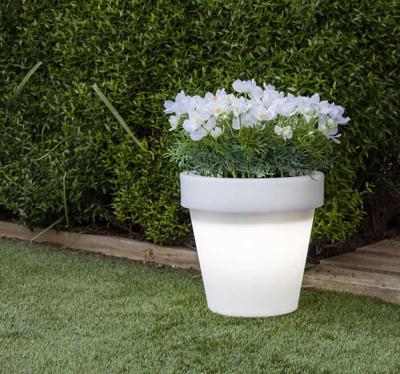 Beleuchteter Blumentopf mit einem austauschbaren E27 LED-Leuchtmittel in weiß und ø45cm mit Kabel für den 230V Anschluß. Der Magnolia 45 ist aufgrund seines Designs, seiner Größe und Stabilität ideal als ansehnliches Accessoire und Pfanzenlebensraum für die Terrasse geeignet. Zugleich ist der Topf auch ein praktischer und eleganter Ersatz für eine Leuchte mit 250 Lumen. MAGNOLIA gilt als einer der Star-Pflanztöpfe in der Newgarden Garden Collection. Seine große Auswahl an Oberflächen, Größen und Farben macht es zu einem unverzichtbaren Bestandteil des Sortiments runder Blumentöpfe. Der Blumentopf ist für den Innen- und Außenbereich geeignet. Alle Newgarden-Produkte bestehen aus Polyethylen und sind daher äußerst widerstandsfähig gegen extreme Temperaturenschwankungen - Sommer wie Winter. Sie sind auch vor UV-Strahlen geschützt, wodurch eine sehr lange Lebensdauer des Artikels zu erwarten ist. Der Topf verfügt über die Schutzart IP65 und kaltweißes Licht.
