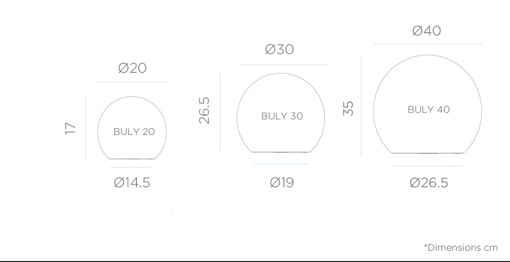 Dank des Akkus, der über Solarenergie oder das mitgelieferte USB-Ladekabel aufgeladen werden kann, leuchtet Buly selbst bei geringer Sonneneinstrahlung bis zu 20 Stunden. Mit der IR-Fernbedienung lassen sich Lichtfarbe, Helligkeit und der Automatikmodus zum Einschalten bei Dunkelheit bequem einstellen. Besonders dekorativ wirkt Buly in Gruppen mit mehreren Größen.