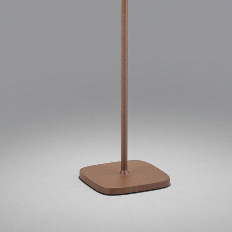 Ein satinierter Acryldiffusor wird ergänzt von einem schlichten Gestell aus Aluminium. Die Lichtverteilung ist gleichmäßig und gemütlich. Die Leuchte kann gedimmt werden. Der Touchdimmer befindet sich auf der Oberseite des Lampenschirmes.