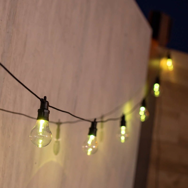 RGB Partylichterkette oder einfach nur eine Lichterkette mit Farbwechsel, um an warmen Sommerabenden eine dezente Hintergrundbeleuchtung zu haben, wenn du mit Freunden auf deiner Terasse oder Balkon sitzt. Die Leuchtmittel sind inklusive und nicht austauschbar. Mit der Fernbedienung kann die Farbe der Leuchten verändert werden. Sie ist auch perfekt für Veranstaltungen und Partys. Ein An- und Ausschalten ist via Fernbedienung ebenfalls möglich. Sie ist im geschützten Außenbereich einsetzbar, da die Schutzart IP44 aufweist. Die Größe der Allegra Lichterkette beträgt 8 Meter. Die Kette weist 4 Betriebsarten auf. Sie ist im geschützten Außenbereich einsetzbar, da sie die Schutzart IP44 aufweist.
