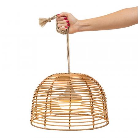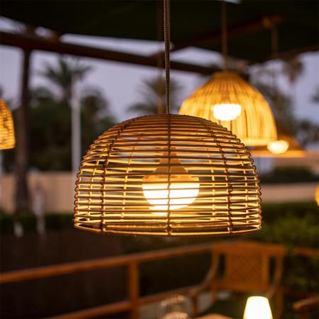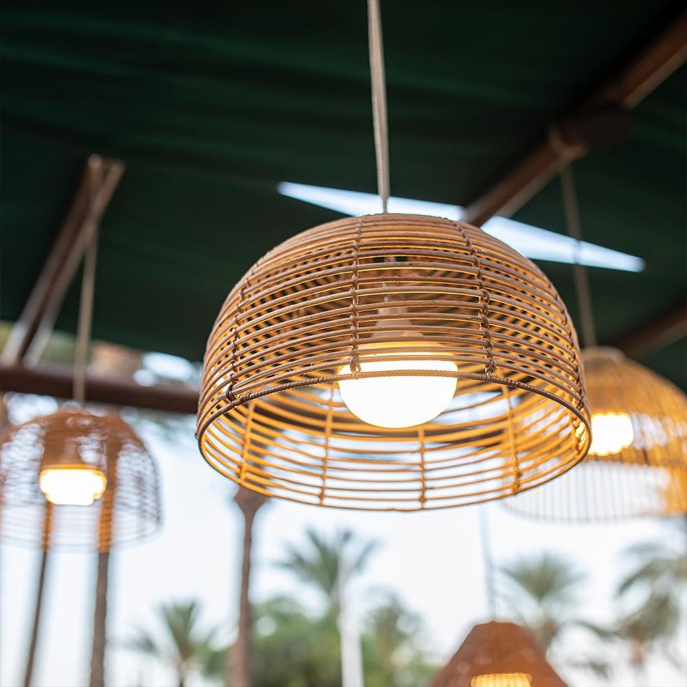 Die BOSSA 20 Pendelleuchte ist eine der Neuheiten von NEWGARDEN. Durch ihr warmweißes Licht ist sie hervorragend für eine gemütliche Beleuchtung auf der Terrasse an lauen Sommerabenden geeignet. Das tolle an der Leuchte ist, daß sie kein Anschluß an das Stromnetz benötigt. Durch den integrierten aufladbaren Akku kann die Leuchte unkompliziert überall da aufgehängt werden wo schnell Licht benötigt wird. Ein stimmiges Ensemble erreicht man auch, indem man die CALOBRA mit anderen Rattangeflecht Hängeleuchten der Serien Sisine, Bossa und Reona, kombiniert. Alle diese Anhängermodelle sind IP54 geschütz und damit für den Außenbereich geeignet. Bitte schützen Sie die Leuchte dennoch vor Regen, da Rattan ein Naturprodukt ist. Die BOSSA Design-Pendellampe besteht aus einem 3 Meter langen Hanfseil-Kabel und einem geflochtenen Lampenschirm und ist einem LED-Leuchtmittel bestückt.