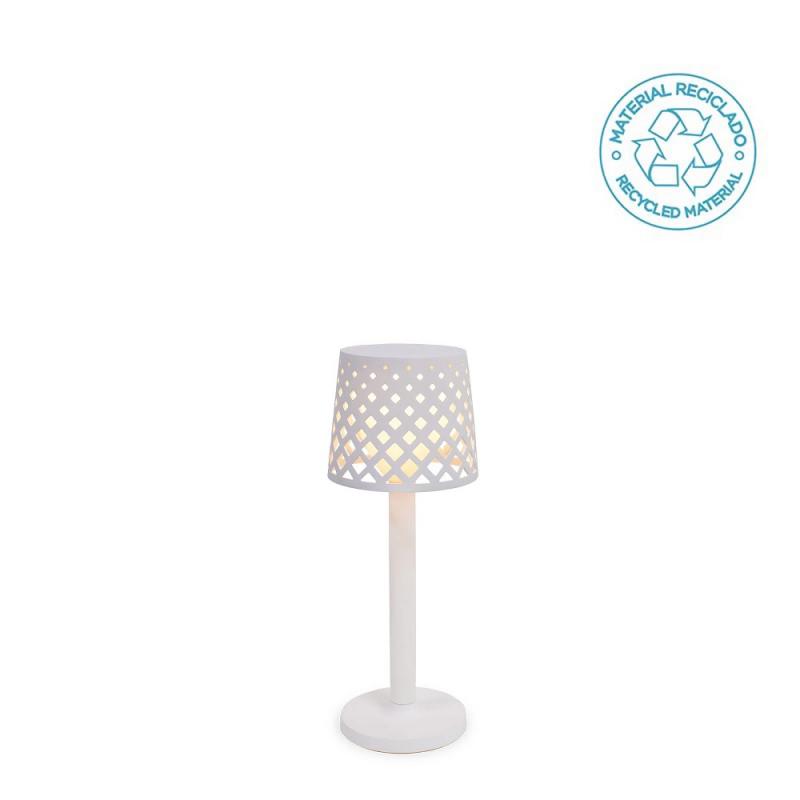 Die Gretita-Tischlampe ist mobil, egal in welchem Raum Ihres Hauses oder Ihres Gartens. Ideal, um ohne Kabel einen Lichtpunkt auf Ihrem Tisch zu schaffen. Gretita besteht aus recyceltem Kunststoff und benötigt zum Betrieb 3 AAA-Batterien (nicht inkl.). Um die Lichtintensität zu steuern, genügt es, die Taste auf der Oberfläche des Schirmes zu drücken. Kombinieren Sie diese Lampen mit den anderen Produkten der Gretita-Familie, um vielefältige Stimmungen zu schaffen.