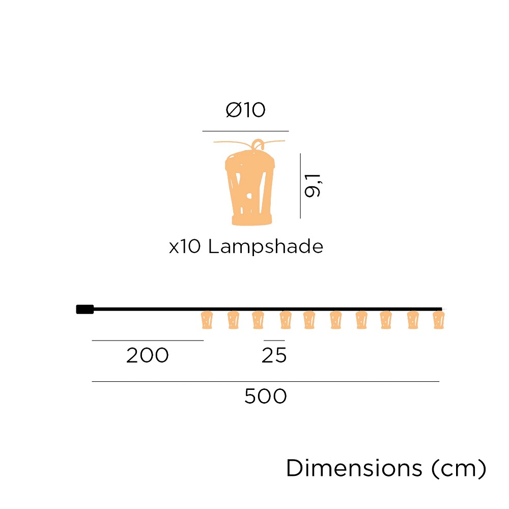 Die Hiama-Girlande ist optimal für Veranstaltungen und Feste, um Garten-, Terrassen-, Restaurantbereich dezent zu beleuchten. Jede der kleinen Lampenschrime hat oben einen Aufhängehaken, sodass die Anbringung einfach ist.