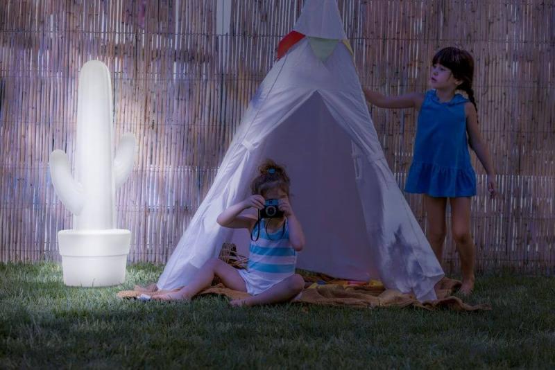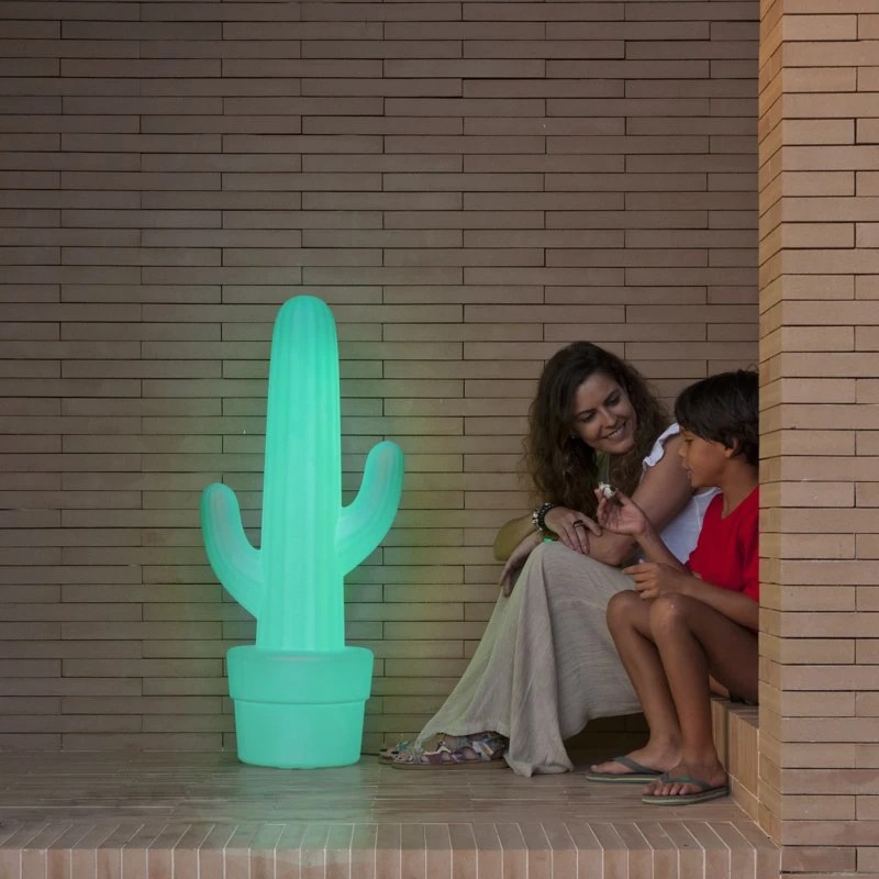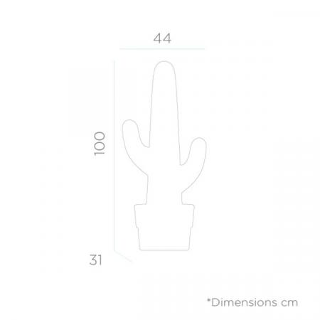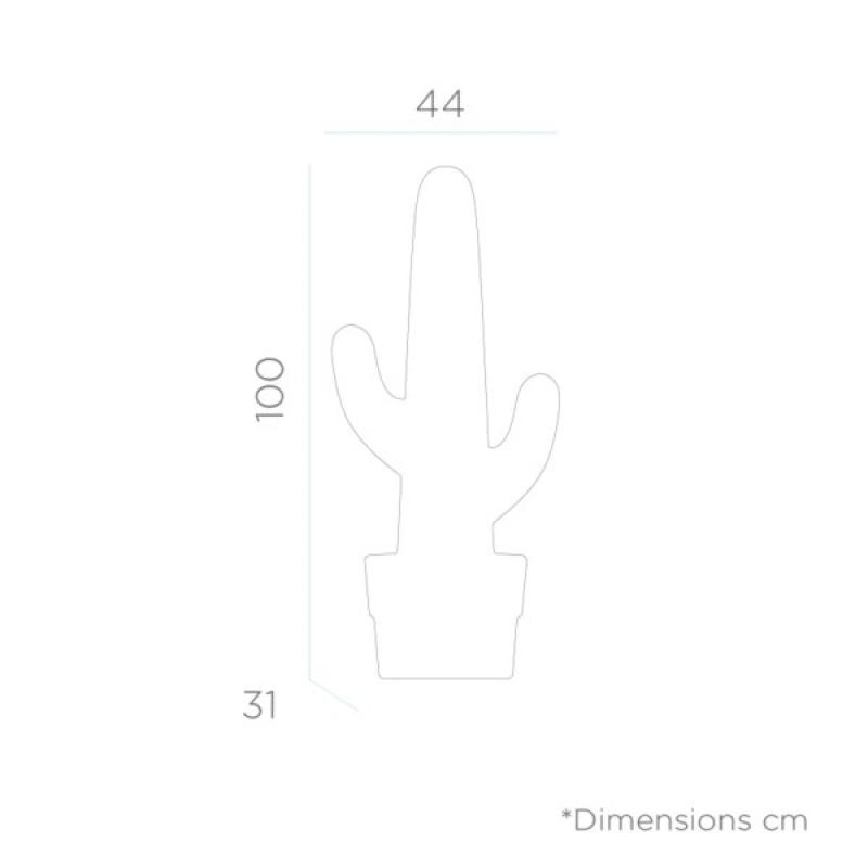 Die weiße KAKTUS 100 ist eine Stehleuchte, die von einem mexikanischen Kaktus inspiriert wurde und eine Höhe von einem Meter hat. KAKTUS ist in limonengrün oder weiß erhältlich. Dieses Produkt ist mit einem innovativen LED-TUBE Beleuchtungssystem ausgestattet. Diese Kaktus Leuchte ist mit einer Fernbedienung erhältlich und besitzt ein dimmbares Licht mit RGBW Farben (Kombinationen aus rotem, grünem und blauem Licht + Weiß). KAKTUS wurde aus Polyethylen gefertigt, wodurch sie äußerst widerstandsfähig gegen extreme Temperaturschwankungen ist. Sie ist zudem vor UV-Strahlen geschützt, wodurch eine hohe Lebensdauer des Produkts zu erwarten ist. Diese Leuchte kann aufgrund des IP65-Schutzes im Außen- und Innenbereich verwendet werden.