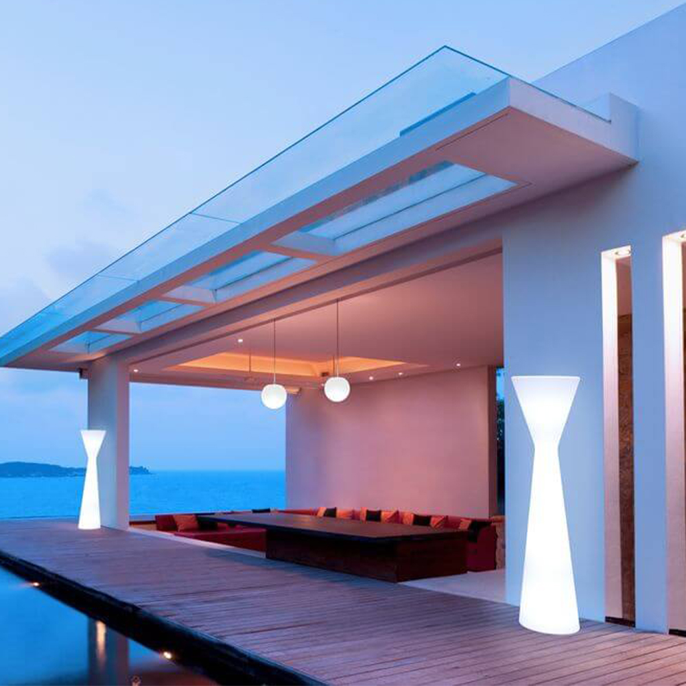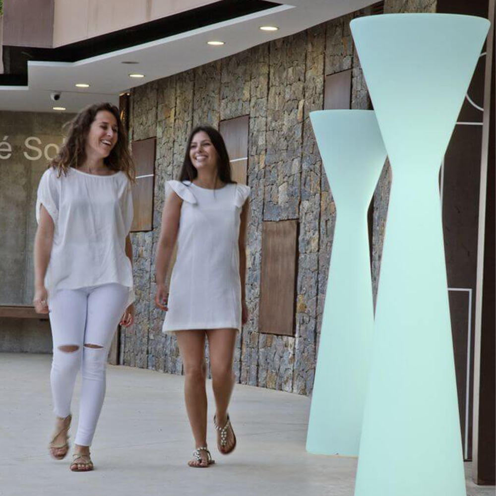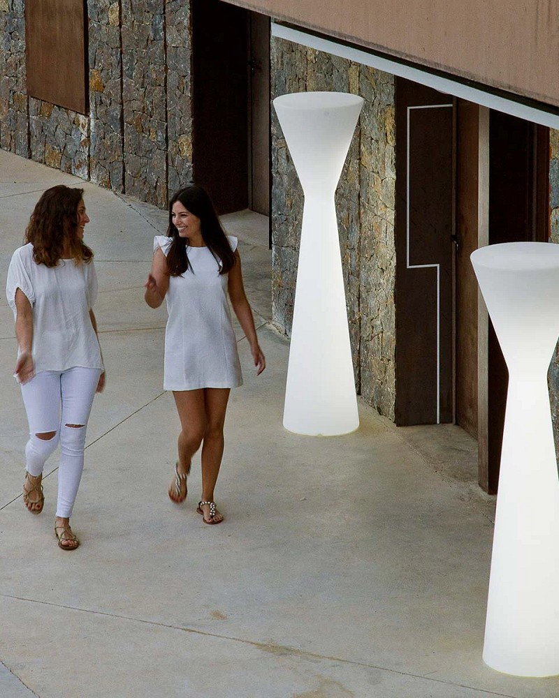 Die KONIKA (ø46x170 cm) ist eine Stehlampe, die, wie der Name schon verspricht, ein konisches Design aufweist. Ideal, um eindrucksvoll den Außenbereich aber auch einen Raum zu gestalten, ohne mit einer zu informellen Ästhetik zu brechen. Dieses Produkt ist mit dem patentierten TUBE LED-Kabelbeleuchtungssystem von Newgarden ausgestattet. Das Licht, das per Fernbedienung gesteuert werden kann, wird durch eine RGBW-LED mit 128-Farbvariationen erzeugt. Die Leuchte wurde aus Polyethylen gefertigt, wodurch sie äußerst widerstandsfähig gegen extreme Temperaturschwankungen ist. Sie ist zudem vor UV-Strahlen geschützt, wodurch eine hohe Lebensdauer des Produkts zu erwarten ist. Diese Leuchte kann aufgrund des IP65-Schutzes im Außen- und Innenbereich verwednet werden.