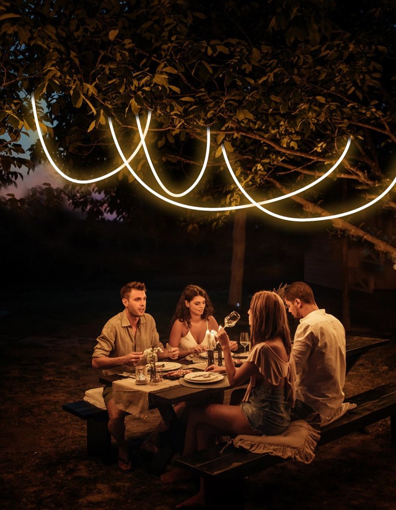 Dieser Lichtschlauch dekoriert Ihren Garten, ob Bäume, Sträucher oder Zäune, hervorragend. Der 3 m Silikonschlauch ist durchgängig mit LEDs bestückt, so dass er rundum leuchtet. Außerdem ist er sehr flexibel, so dass er auch um Äste geschlungen werden kann.