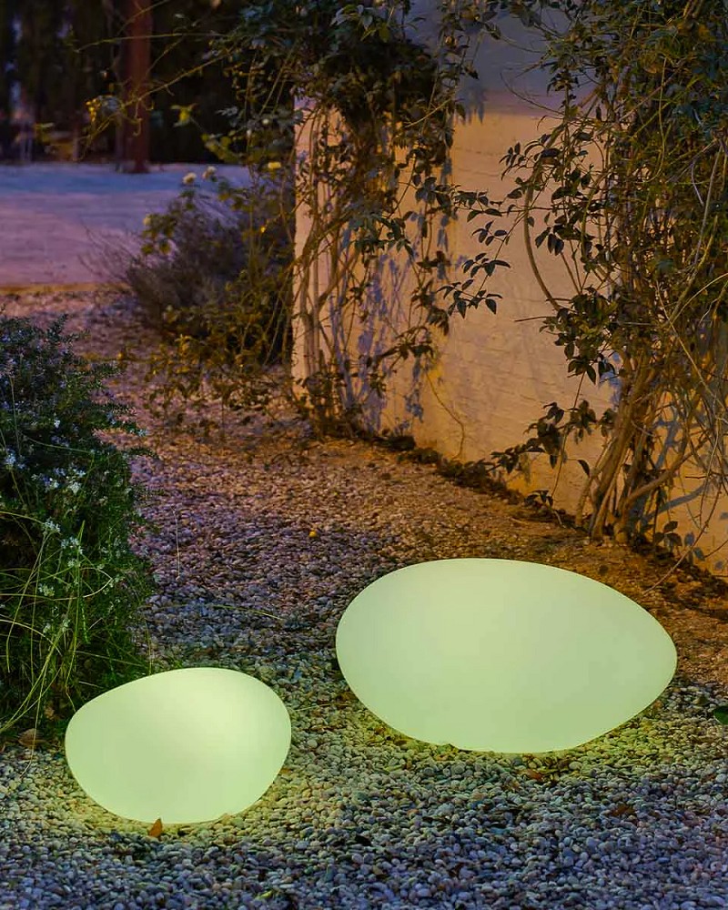 PETRA: Inspiriert von einem beleuchteten Stein ist ideal, um ein Haus oder Garten zu dekorieren (60 x 44 x 30 cm). Der Stein strahlt ein weißes Licht aus und wird per Kabel und Stecker an den 230 Volt Strom angeschlossen. PETRA eignet sich beispielsweise als Partybeleuchtung, als Blickfang auf der Terrrasse / Balkon oder im Eingangsbereich oder als Wegbeleuchtung im Garten oder als Eyecatcher in einem Blumenbeet. PETRA verleiht Ihrem Zuhause einen modernen Touch. Diese Leuchte kann aufgrund des IP65-Schutzes im Außen- und Innenbereich verwendet werden. PETRA wurde aus Polyethylen gefertigt, wodurch er äußerst widerstandsfähig gegen extreme Temperaturschwankungen ist. Er ist zudem vor UV-Strahlen geschützt, wodurch eine hohe Lebensdauer des Produkts zu erwarten ist. PETRA ist in verschiedenen Größen erhältlich, sodass er für verschiedene Anwendungszwecke passt. Dieses Newgarden-Produkt ist in Spanien entwickelt, gestaltet und hergestellt und bring ein wenig Mittelmeerfeeling in Ihr Heim oder Garten.