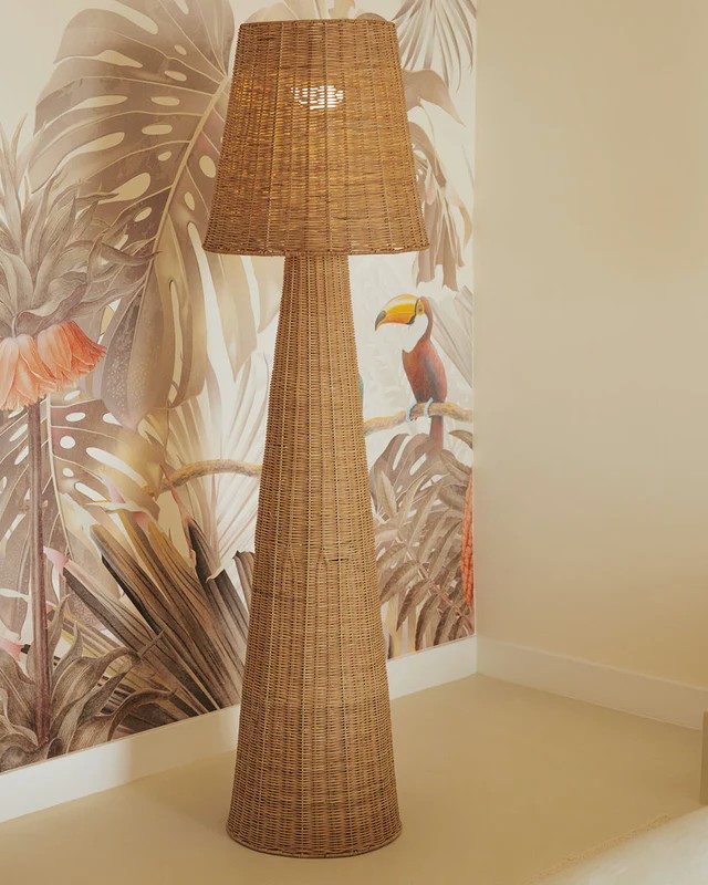 Die Lola Stehleuchte bringt natürliche Wärme und Stil auf Balkon, Terrasse oder in den Garten. Gefertigt aus naturfarbenem Rattan, strahlt sie einen gemütlich-rustikalen Charme aus. Mit der Schutzart IP54 trotzt sie zuverlässig Staub und Spritzwasser – perfekt für den Außenbereich.