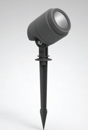 Moderner Erdspieß Strahler mit leistungsstarker LED für die Akzentbeleuchtung im Außenbereich. Als Zubehör erhalten Sie Farbscheiben zum Einlegen.