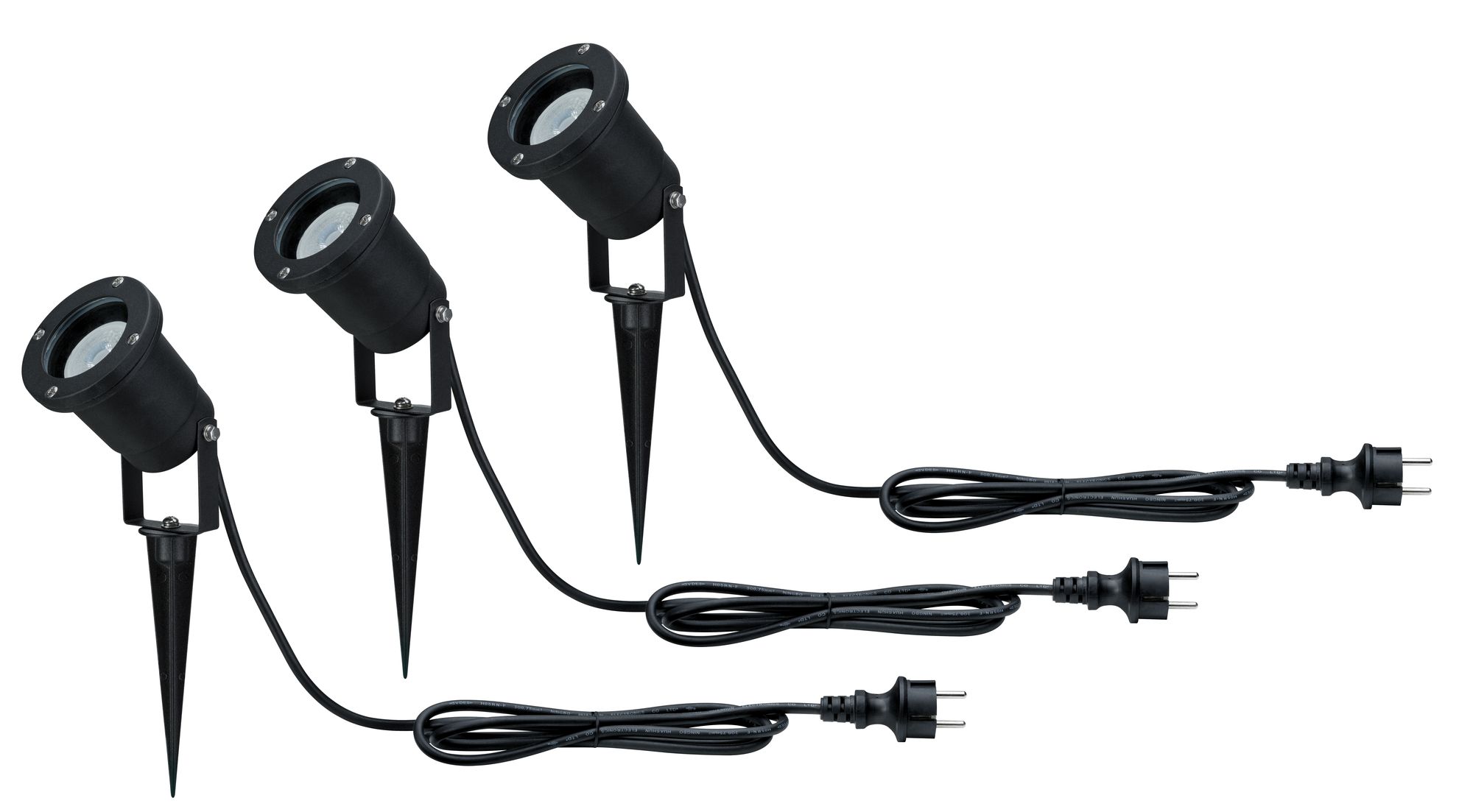 Die verstellbaren Gartenspots im Dreierset lassen Ihre Blumen, Sträucher und Bäume in warmweißem Licht erstrahlen. Passende Leuchtmittel sind im Lieferumfang enthalten. Bei Bedarf können Sie die Leuchten auch ohne Spieß als Aufbaustrahler für die Beleuchtung von Fassaden, Gartenhäusern und Terrassen verwenden. Die Leuchten sind IP65 strahlwassergeschützt und können im Freien installiert werden, der Stecker hat einen IP44 Spritzwasserschutz und sollte daher am Haus oder unter dem Dach angebracht werden.