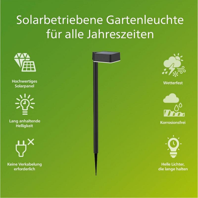 Philips LED Solar Erdspießleuchte Vynce Schwarz 1,5W IP44