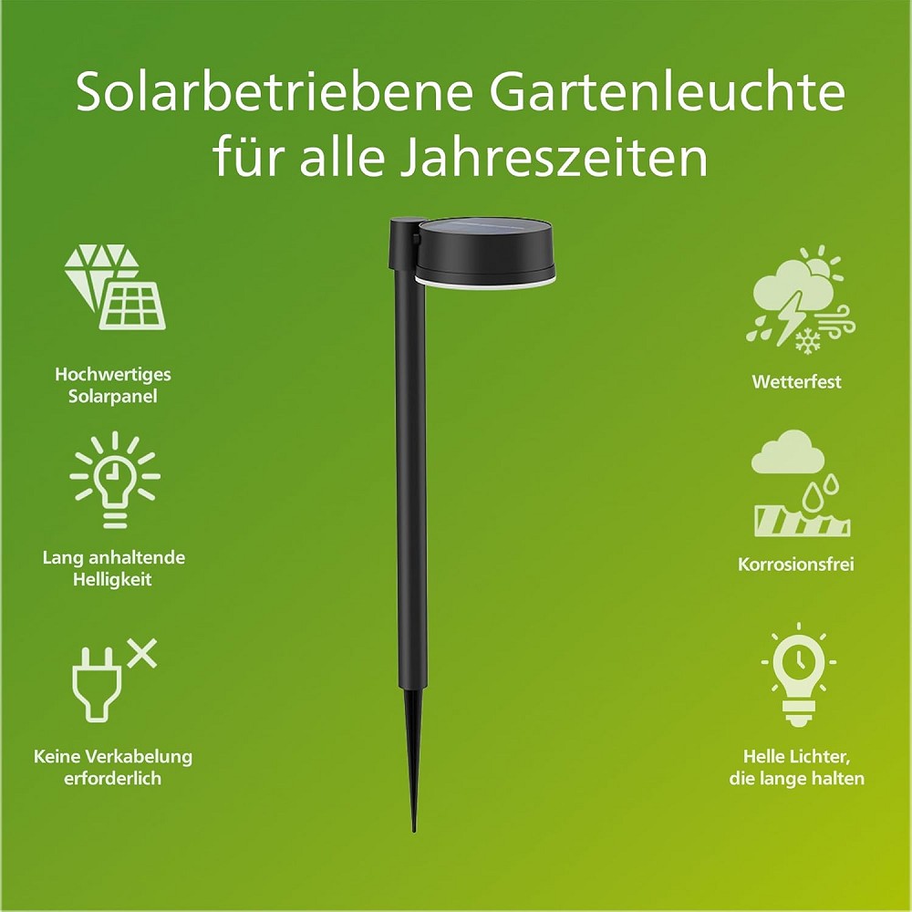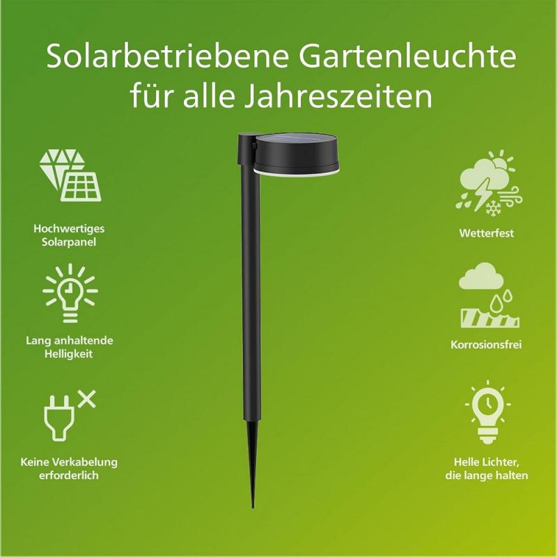 Philips Philips LED Solar Erdspießleuchte Vynce Schwarz 1,5W IP44