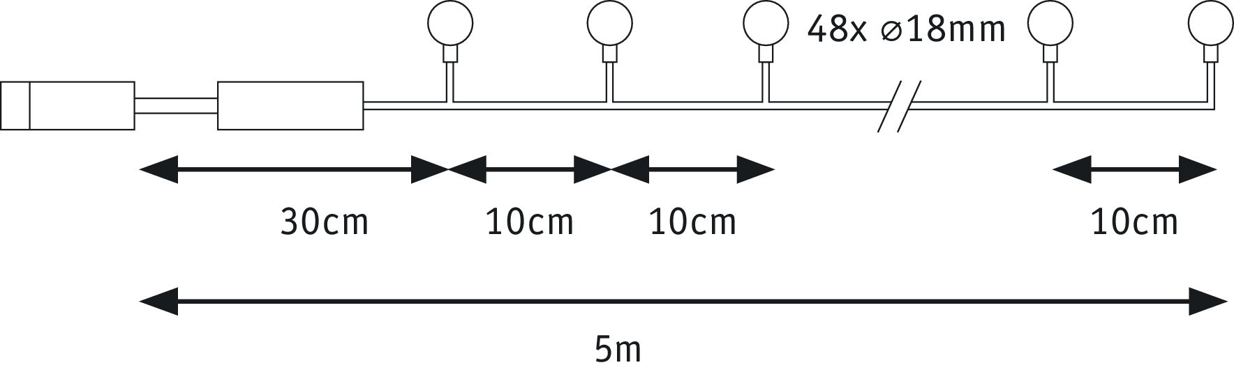 Diese dekorative Plug & Shine Lichterkette mit 48 kleinen Lichtern und einer Länge von 5 Metern sorgt mit ihrem warmweißen Licht für die perfekte Atmosphäre im Freien. Mit ihr lassen sich wunderbare Highlights im Garten schaffen, der Kreativität sind dabei keine Grenzen gesetzt. Mit Trafos, Verbindern und weiteren Leuchten aus der Plug & Shine Serie lässt sich eine individuelle Lichtinstallation für den Außenbereich zusammen stellen.