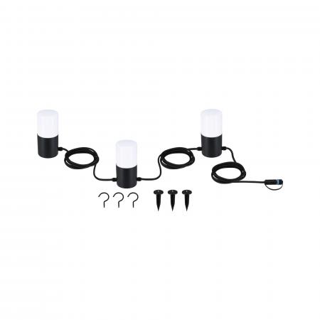 Flexible Hingucker für den Außenbereich - Die Plug & Shine LED Lichterkette Tubs mit E14-Fassung ist die perfekte Ergänzung für die Outdoor-Dekoration. Mit ihr lassen sich gemütliche, warmweiße Lichtakzente im Außenbereich schaffen. Die Lichterkette lässt sich flexibel an Geländern, Bäumen und Pflanzen platzieren. Die drei Leuchten der Kette sind IP44 Spritzwassergeschützt und können somit auch im Freien eingesetzt werden. Das Kabel zwischen den einzelnen Leuchten hat eine Länge von 2m. Sie ist kombinierbar mit allen Zubehörteilen aus der Plug & Shine Serie. Die Leuchtenkette bietet flexible Platzierungsmöglichkeiten dank mitgelieferter Spieße und Deckenaufhängungen.