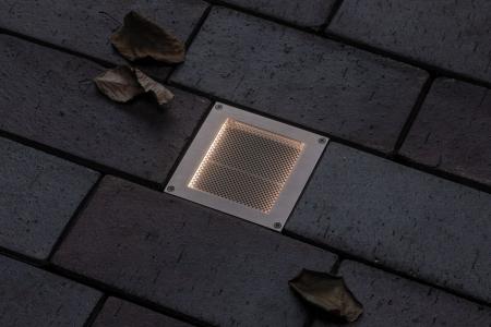 Leuchtende Pflastersteine ganz ohne Kabel: Die Solar-Bodeneinbauleuchte Aron in den Abmessungen 10x10 cm, lässt sich ganz unabhängig vom Stromanschluss verlegen. Tagsüber werden die Akkus durch Sonnenlicht aufgeladen und in der Dämmerung leuchtet ein Orientierungslicht das zum Funktionslicht wird, wenn der Bewegungsmelder Personen in der Nähe wahrnimmt. Da die Solarzellen etwas zurückgesetzt liegen, sind sie nahezu unsichtbar und man nimmt nur eine gleichmäßig leuchtende Fläche wahr. Die Bodeneinbauleuchte ist dank Schutzart IP67 garantiert wasserdicht, rostfrei und für den Einbau in begehbaren Außenbereichen geeignet - bis zu 500kg Gewicht steckt die Leuchte locker weg.