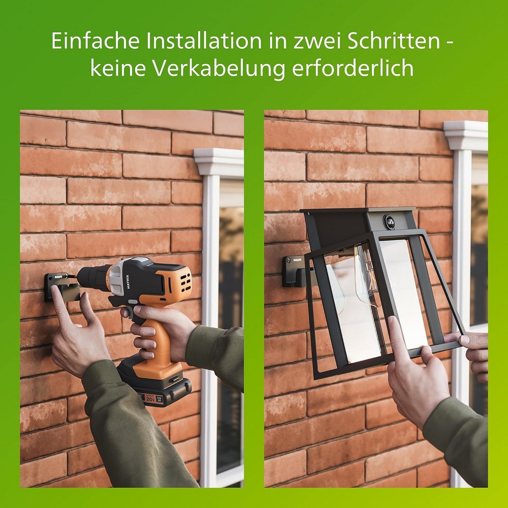 Diese moderne, solarbetriebene Wandleuchte von Philips kombiniert zeitgenössisches Design mit intelligenter Lichttechnik. Dank integriertem Bewegungssensor und Dämmerungserkennung sorgt sie automatisch für Licht, wenn es gebraucht wird – ganz ohne Stromanschluss. Die wetterfeste Bauweise und das langlebige UltraEfficient LED-System machen sie zur idealen Wahl für Garten, Terrasse oder Eingangsbereich.