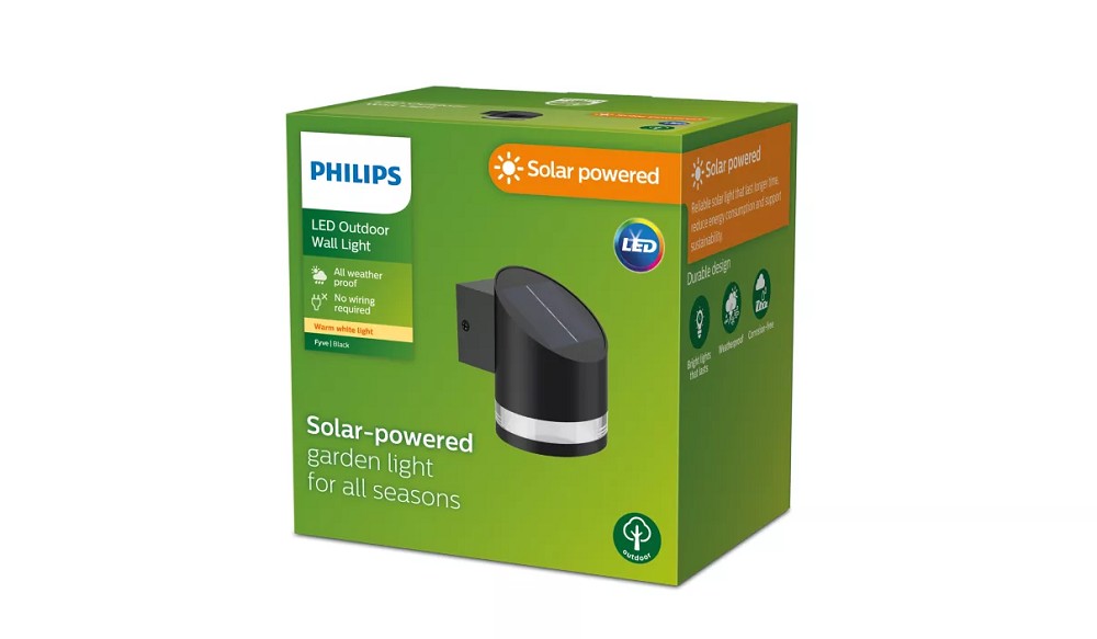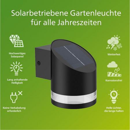 Philips LED Solar Wandleuchte Fyve II Schwarz 1,5W IP44