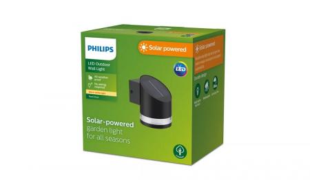 Preview: Philips LED Solar Wandleuchte Fyve II Schwarz 1,5W IP44