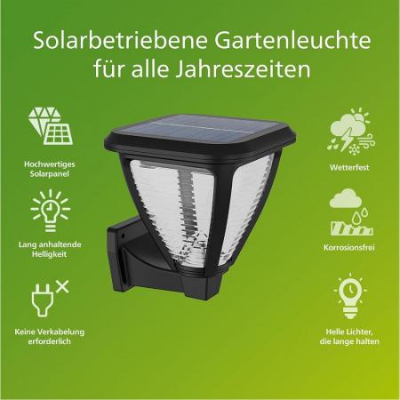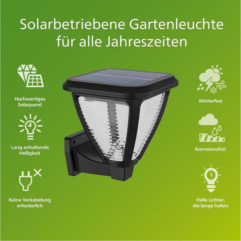 Die Philips Vapora Wandleuchte ist eine zuverlässige Solarleuchte mit einer längeren Nutzlebensdauer. Sie senkt den Energieverbrauch und ist ein Beitrag zur Nachhaltigkeit.