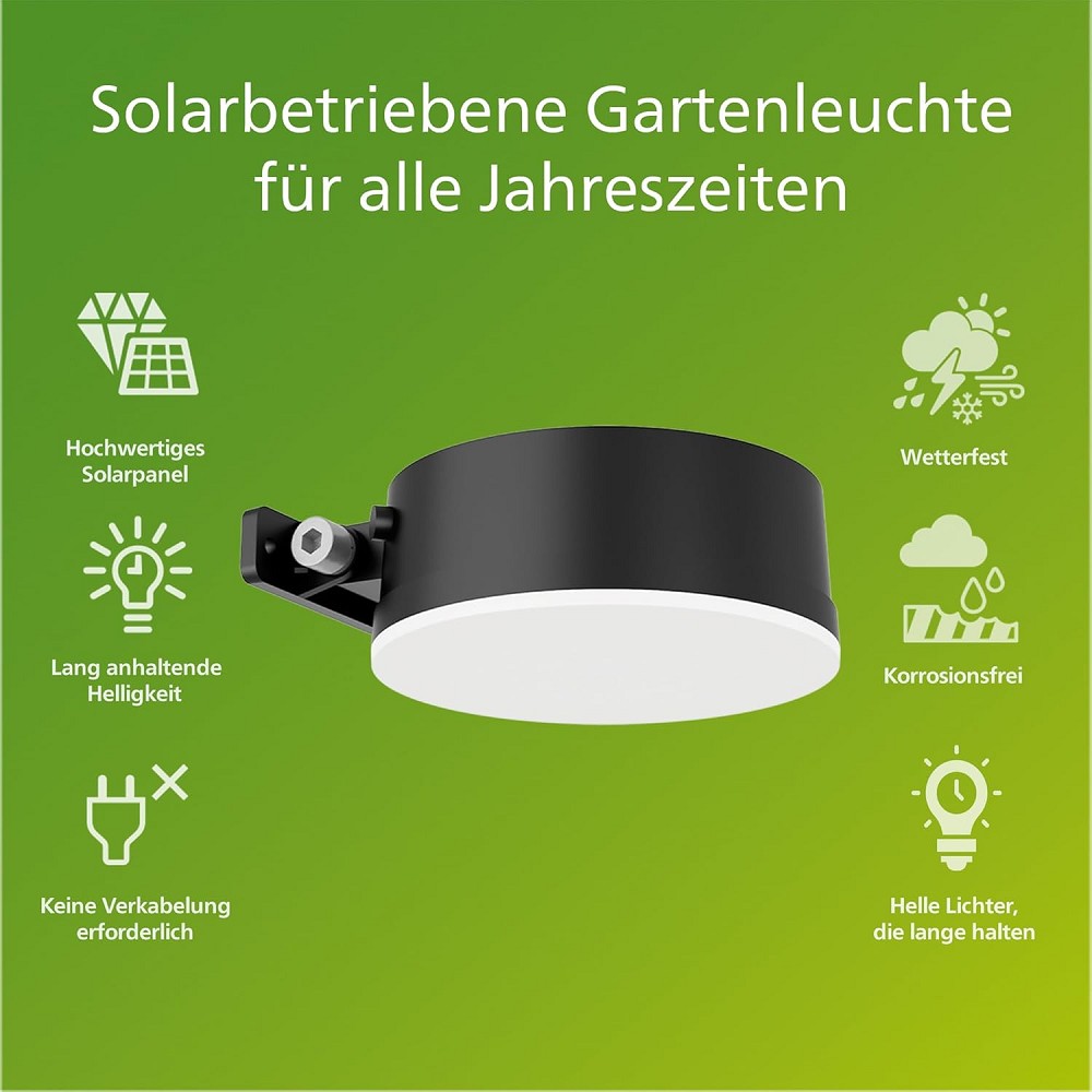 Philips LED Solar Wandleuchte Vynce Schwarz 1,5W IP44
