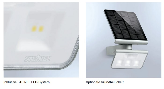 - Funktionen: einstellbares Grundlicht in den Morgen- und Abendstunden, angenehmer Softlichtstart, schwenkbares Solar- und LED-Panel, getrennte Montage von Solarpanel und LED-Panel möglich