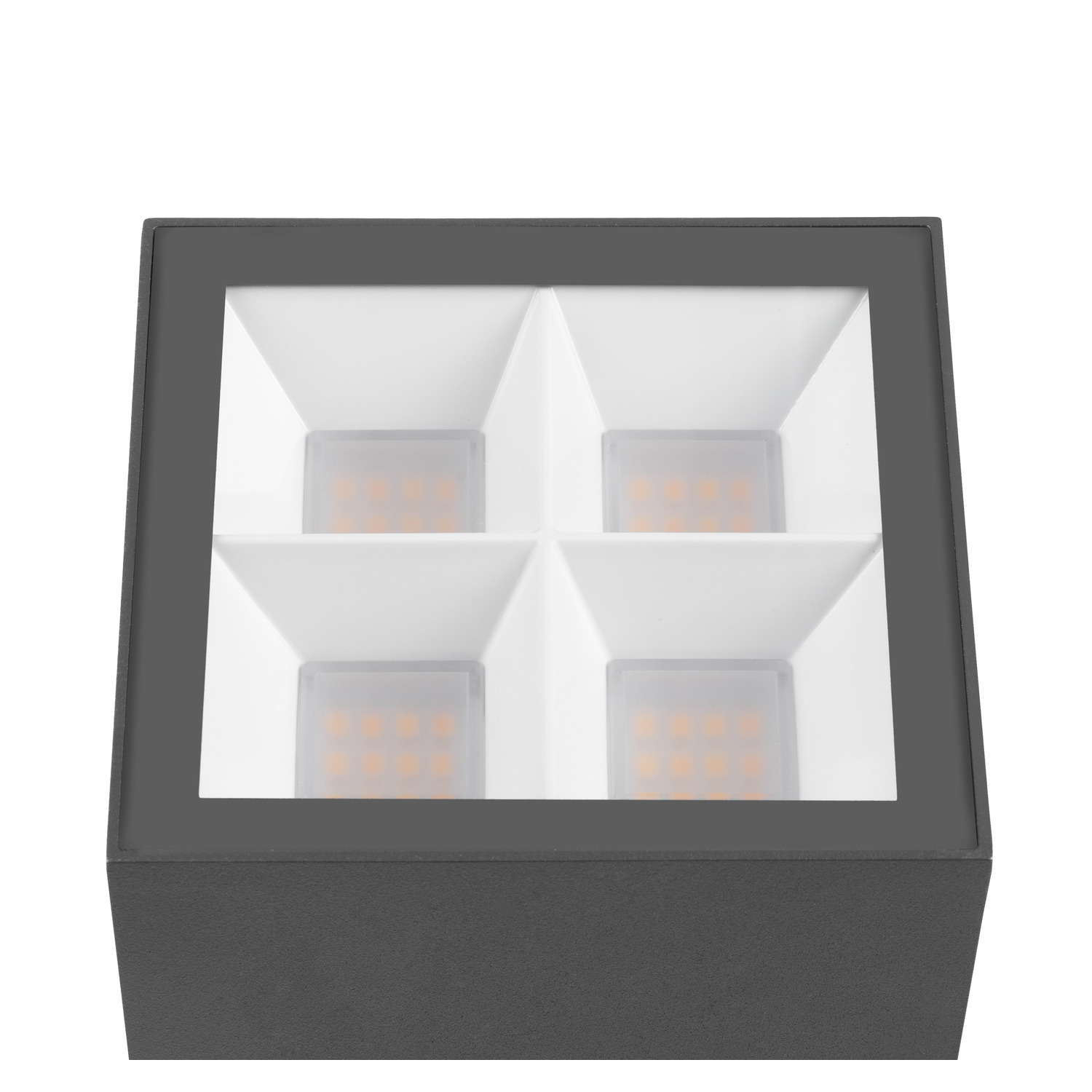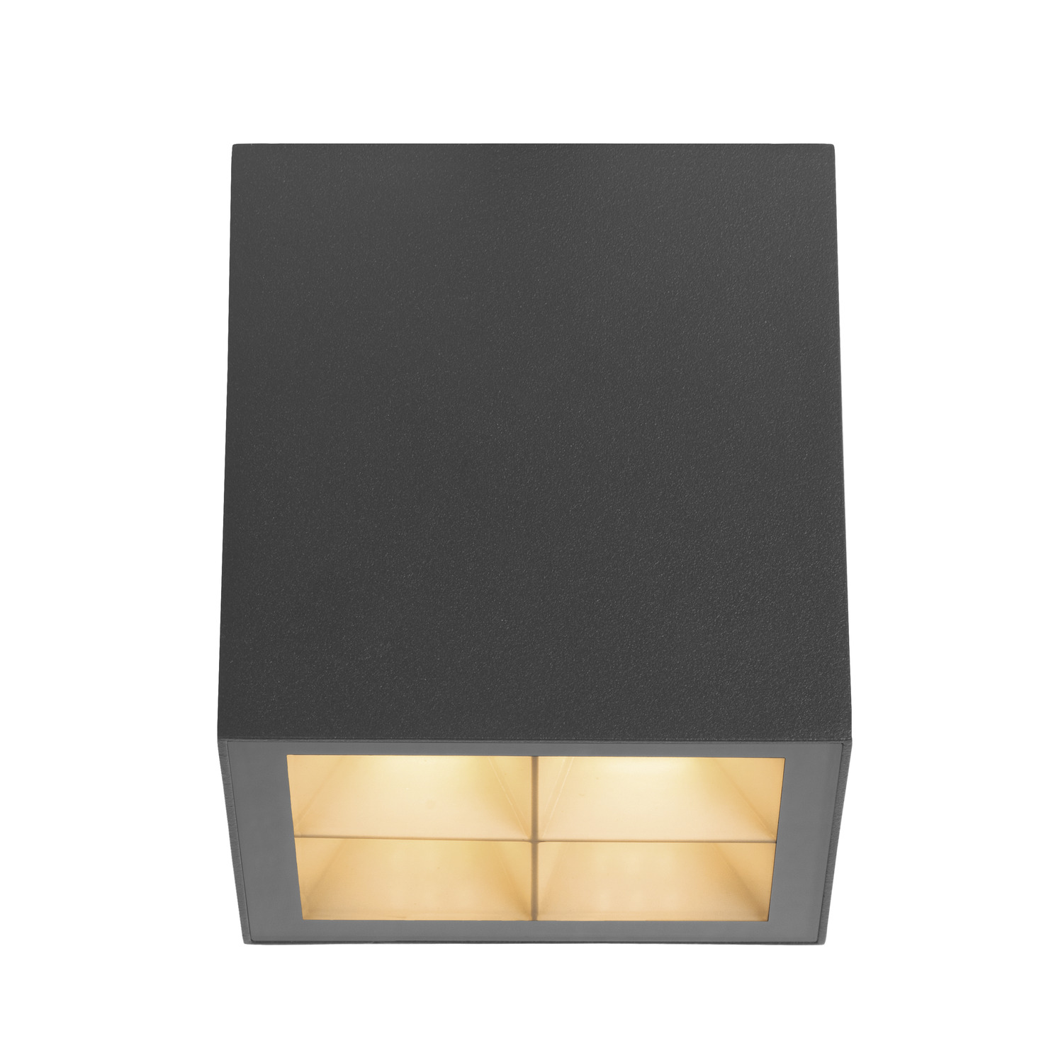 Vor allem überzeugt die neue S-CUBE Deckenaufbauleuchte durch ihr modernes und elegantes Design. Dazu bietet sie mit ihrer via CCT-Switch einstellbaren Lichtfarbe (2700K/3000K), Schutzart IP65, ihrem hohen Farbwiedergabeindex (CRI>80), der Dimmbarkeit und langen Lebensdauer (L80/B10 50.000h) auch sonst alles, was eine hochwertige Outdoor-Leuchte ausmacht. Ein echtes Highlight ist die leicht satinierte LED-Abdeckung, die ein sauberes, homogenes Lichtbild erzeugt und den Blick auf die weißen Reflektoren offenlässt.