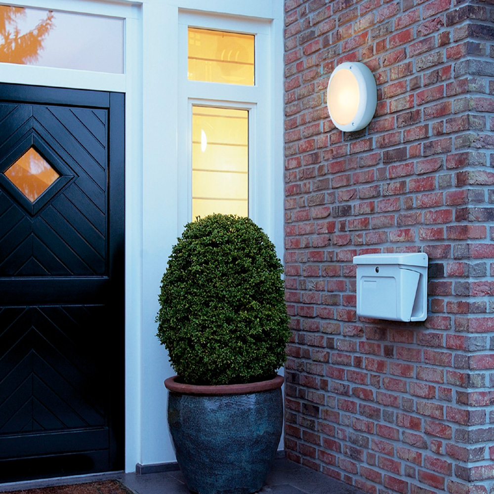 Runde Wand- und Deckenleuchte BULAN aus Aluminium die durch die Schutzart IP44 für den Außenbereich geeignet ist. Die satinierte Leuchtfläche aus Glas wird durch das lackierte Gehäuse eingefasst. Der elektrische Anschluss der in mehreren Farbversionen verfügbaren Leuchte erfolgt direkt an 230V Netzspannung. Diese Leuchte ist geeignet für Leuchtmittel der Energieklassen: E - A+