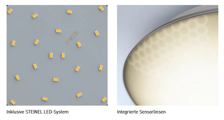 Die LED-Deckenleuchte mit präziser Erfassung ! Die vier Infrarot-Sensoren lassen sich mechanisch in jede Richtung von 2 - 8 m individuell einstellen. Für eine optimale Anpassung an die örtlichen Gegebenheiten, wie z. B. Carports und Vordächer, ist die 360° Rundum-Erfassung bestens geeignet. Dabei fungiert die Leuchtenabdeckung gleichzeitig als Sensorlinse – eine patentierte Weltneuheit! Die Deckenleuchte strahlt mit 1000 lm bei 9,8 W und kann in bis zu 6 m Höhe montiert werden, inklusive komfortabler Nachtlichtfunktion (10 %) bei Dämmerung.