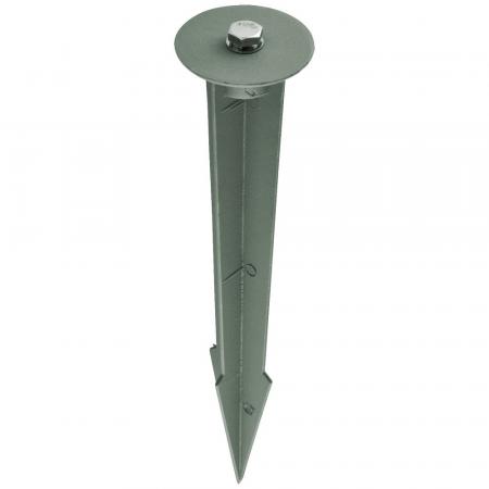 Der Erdspieß eignet sich bestens für die Befestigung von Leuchten und Wallpainter im unbefestigten Untergrund. Die Abmessungen der Schraube: Länge 16mm, Durchmesser 8mm.
