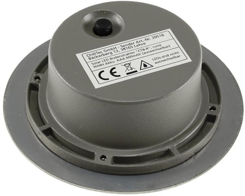 ChiliTec Solar LED Bodenstrahler "CTB-R", rund ØxH 12x4cm, IP44, Edelstahl-Front
