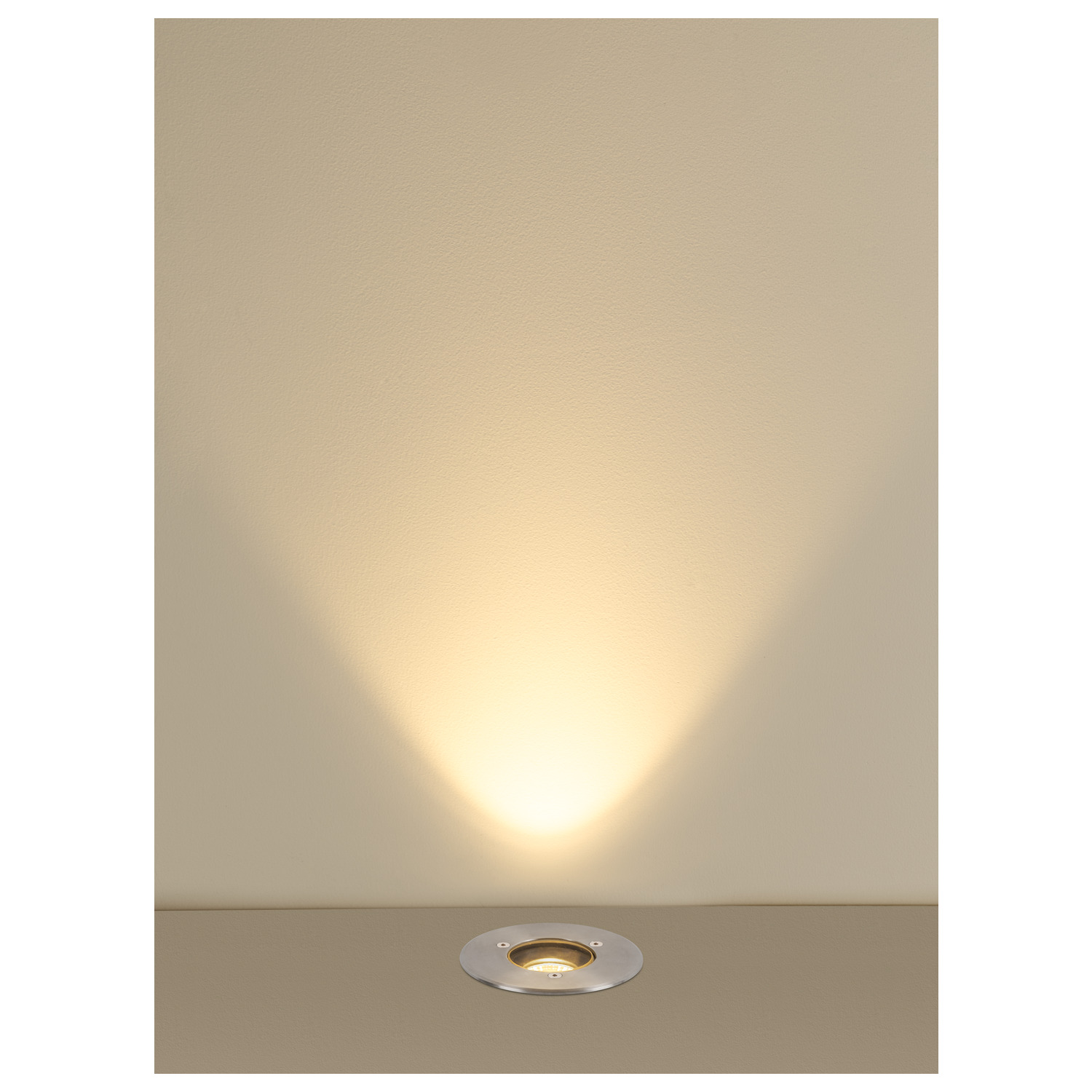 Die DASAR® S Bodeneinbauleuchte überzeugt mit hochwertiger Qualität. Dabei lässt sich die symmetrische Lichtausstrahlung via CCT-Switch (2700K/3000K) in der Farbtemperatur einstellen. Während die mechanische Belastung der Edelstahl-Leuchte bei 2.000 kg liegt, ist sie dank IP67 bei jedem Wetter geschützt. Dazu lässt sich der Abstrahlwinkel mit drei separat erhältlichen und austauchbaren Reflektoren (15°, 36°, 60°) individuell gestalten. Und mit dem mit dem separat erhältlichen Montagegehäuse ist die Installation ebenso schnell wie einfach erledigt.