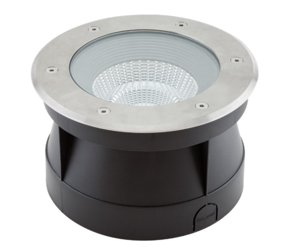 Der Leuchtenkörper der Bodeneinbauleuchte ist aus massivem Aluminium gefertigt, der obere Abdeckring hingegen aus V2A-Edelstahl und kann für vielfältige Anwendungen im Außenbereich verwendet werden. Die Montage erfolgt mittels der im Lieferumfang befindlichen Kunststoff-Einbauhülse. Da der COB-LED-Chip fest verbaut ist, fallen keine zusätzlichen Kosten für Leuchtmittel an. Ebenso entstehen auch keine zusätzlichen Kosten für ein Vorschaltgerät, da der Anschluss direkt an die 230V-Zuleitung erfolgt. Die maximale Überfahrgeschwindigkeit beträgt 20km/h. Optional sind für die Leuchte ein mattes Glas, sowie ein Blendschutz erhältlich.