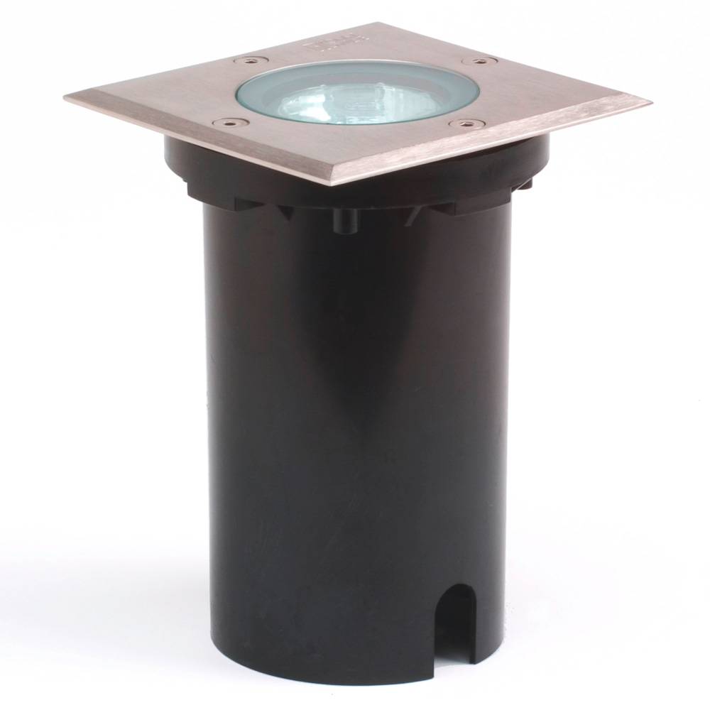 Mit Ground Spot finden Sie immer den richtigen Weg und erzielen trotzdem schöne Effekte. Ob Weg oder Terrasse, der eckige Bodentopfstrahler sorgt für Helligkeit. Bis zu 1,5 Tonnen schwere Fahrzeuge dürfen ihn überfahren. Auf der Oberfläche ist dann eine Edelstahlplatte mit einem satinierten Glaseinsatz zu sehen, während der Einbautopf aus robustem Kunststoff (Schutzart IP65) gefertigt ist.