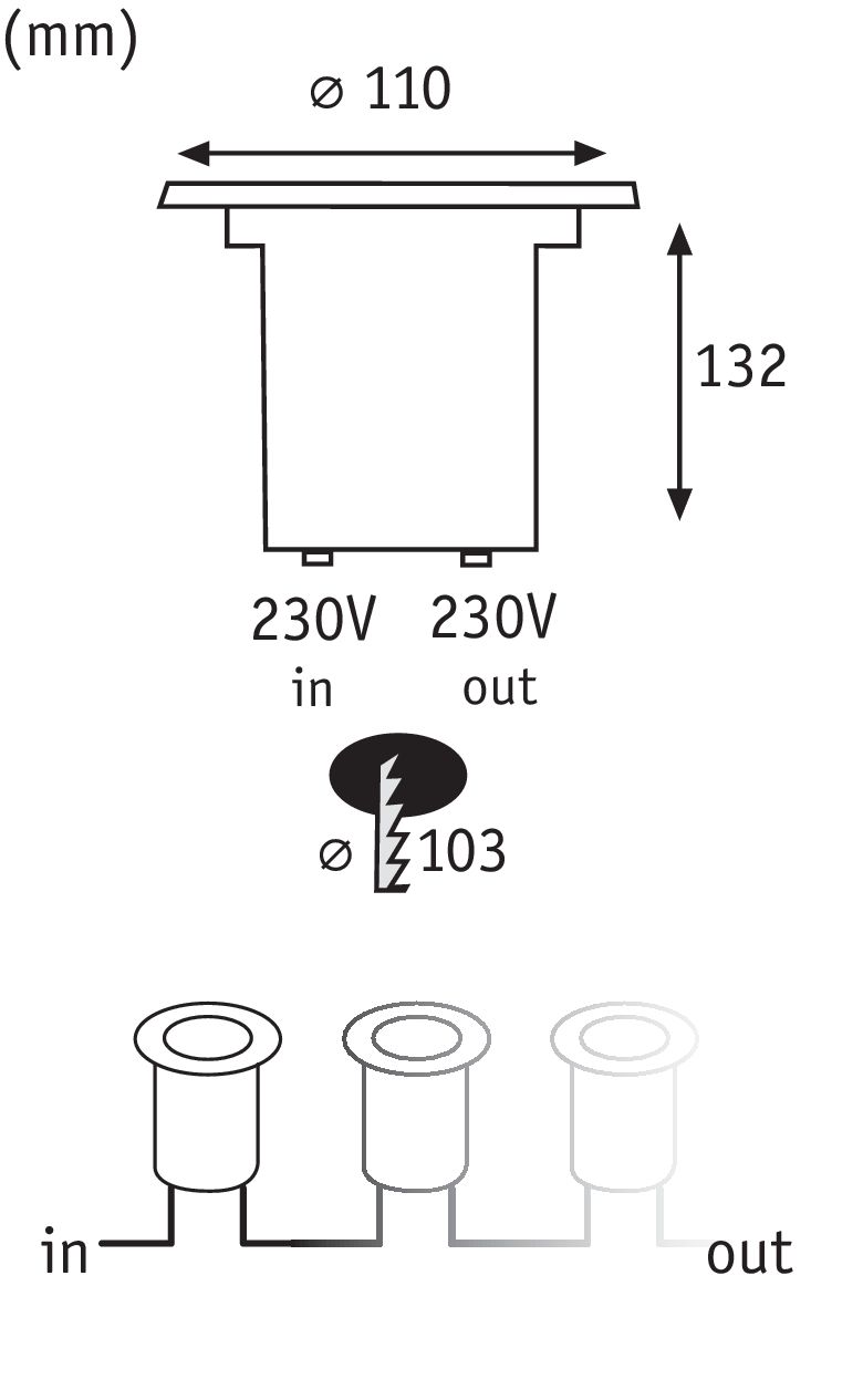 Paulmann 93788 Special Einbauleuchte Set Boden rund LED 1.2W 2700K 110mm Edelstahl/Metall