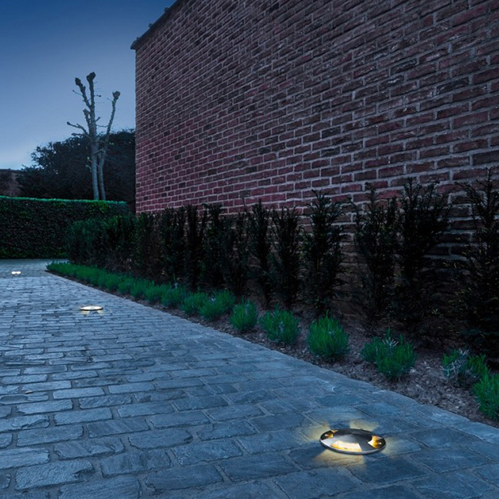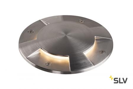 Flacher Bodenstrahler / Bodenlicht Outdoor mit 4 Auslässen aus Edelstahl nur 2 cm hoch