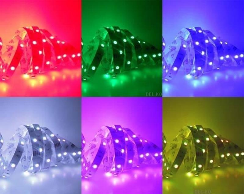 Lieferumfang: 5m RGB LED Streifen + Fernbedienung + IR Empfänger + Netzteil