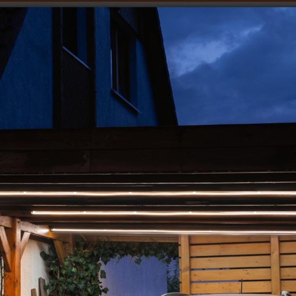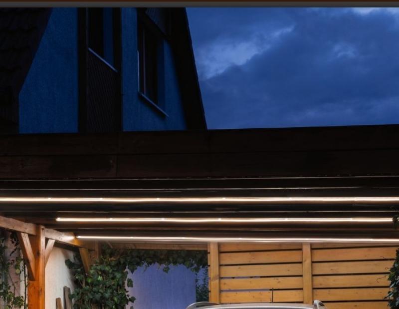 Der warmweiße SimpLED Outdoor Stripe mit einer Länge von 5m spendet homogenes, dekoratives Licht rund ums Haus. Er erzeugt eine flexibel zu verlegende Lichtlinie, ohne sichtbare LED Punkte. Das steckerfertige Komplettset eignet sich zur Beleuchtung z.B. am Carport, unter dem Dachüberstand oder an der Terrasse. Der Stripe erzeugt durch die hohe Anzahl an LED´s und dem robusten Silikonmantel ein durchgängiges Lichtband. Die Beschichtung bietet Schutz vor Staub und Spritzwasser.