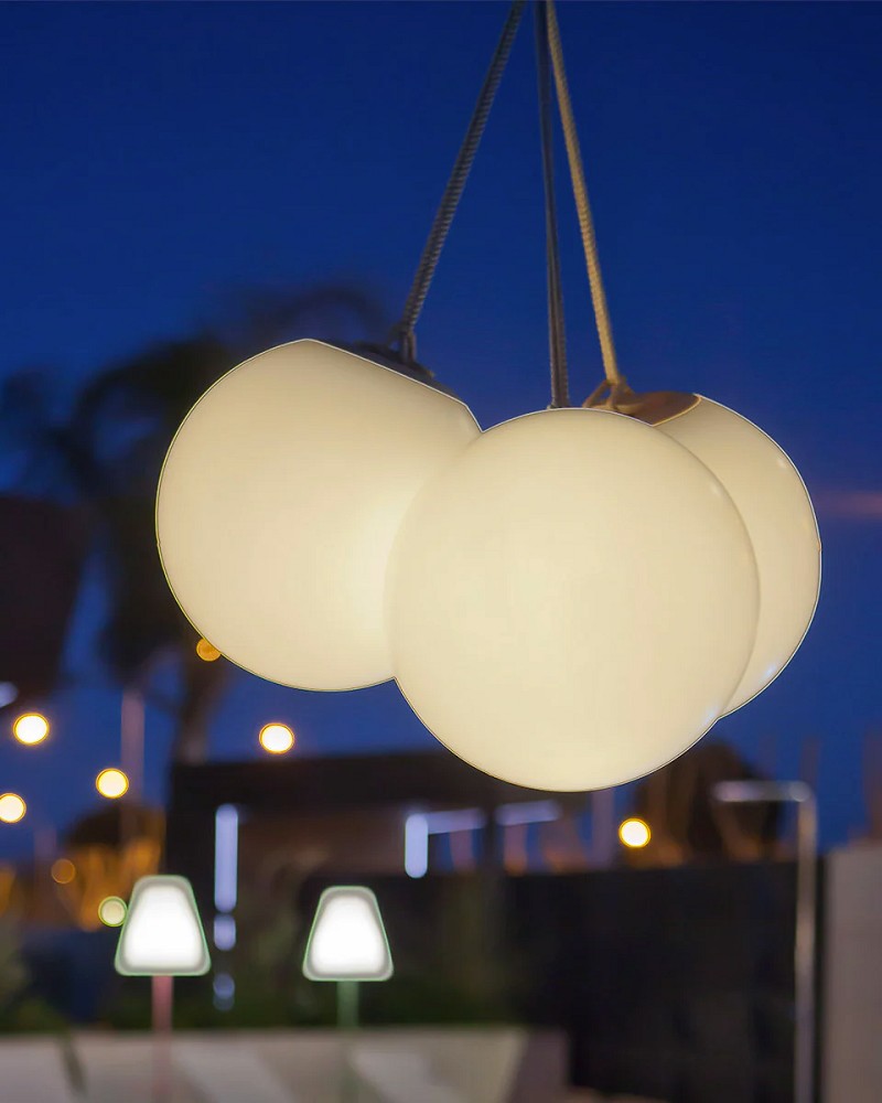 Die Norai Pendelleuchte in weiss-beige taucht in die Welt der Outdoorleuchten ein. Inspiriert vom Mittelmeer ist die kugelige Leuchte für die Veranda oder zum Aufhängen im Freien z.B. an Bäumen perfekt. Sie ist kabellos und mit LED-Licht in 128 Farben + warmem Licht versehen. Die Bedienung - an- aus, Dimmen & Farbwechsel - erfolgt via Fernbedienung.Der benötigte Strom wird aus einer wiederaufladbaren in der Leuchte integrierten Batterie bezogen. Mit aufgeladenem Akku beträgt die Leuchtdauer 12-36 Stunden, abhängig von der Farbe des Lichts, in dem die Leuchte in Betrieb genommen wurde. Optimal für draußen - am Strand, am Pool und auf Garten Partys. NORAI ist in 3 Farben erhältlich: Space Grey, Pink oder Beige. Nehmen Sie die NORAI mit, wohin Sie wollen - ein Lichtbegleiter auch für eine ruhige und entspannte Atmosphäre. Sie wird mit einem Seeseil befestigt. Die Leuchte wurde aus Polyethylen gefertigt, wodurch sie äußerst widerstandsfähig gegen extreme Temperaturschwankungen ist. Sie ist zudem vor UV-Strahlen geschützt, wodurch eine hohe Lebensdauer des Produkts zu erwarten ist.
