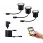 Die runden Smart Home Zigbee 3.0 Plug & Shine Bodeneinbaustrahler sorgen für tolle Lichtakzente und sind die perfekte Ergänzung des Gartenbeleuchtungssystems. Dieses Starterset enthält drei Leuchten, einen Steckertrafo und ein Verbindungskabel mit Anschlussbuchsen. Die fest verbauten LED Module liefern nach Wunsch buntes oder weißes Licht. Farbeinstellungen lassen sich ganz bequem via Zigbee 3.0 vornehmen. Dadurch werden weitere Steuerelemente wie die Plug & Shine Controller überflüssig.